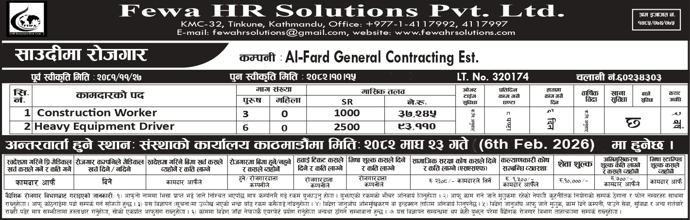 Fewa HR Solutions is a professional HR management organization in Nepal, which has been providing overseas recruitment services to our clients in Saudi Arabia, Kuwait, U.A.E, Oman, Qatar, Bahrain, Malaysia and Far East countries.